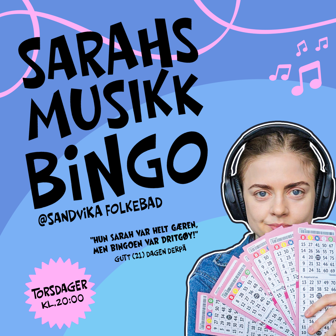 Standupkomiker Sarah Løvald inviterer til Sarahs Musikkbingo – en musikkbingo litt utenom det vanlige. Her er det minst like viktig å ha det gøy som å få bingo.